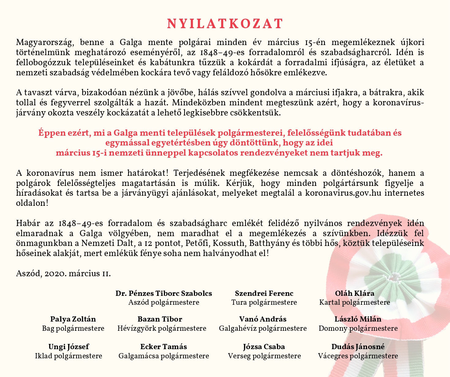 Március 15. megemlékezés elmaradásáról