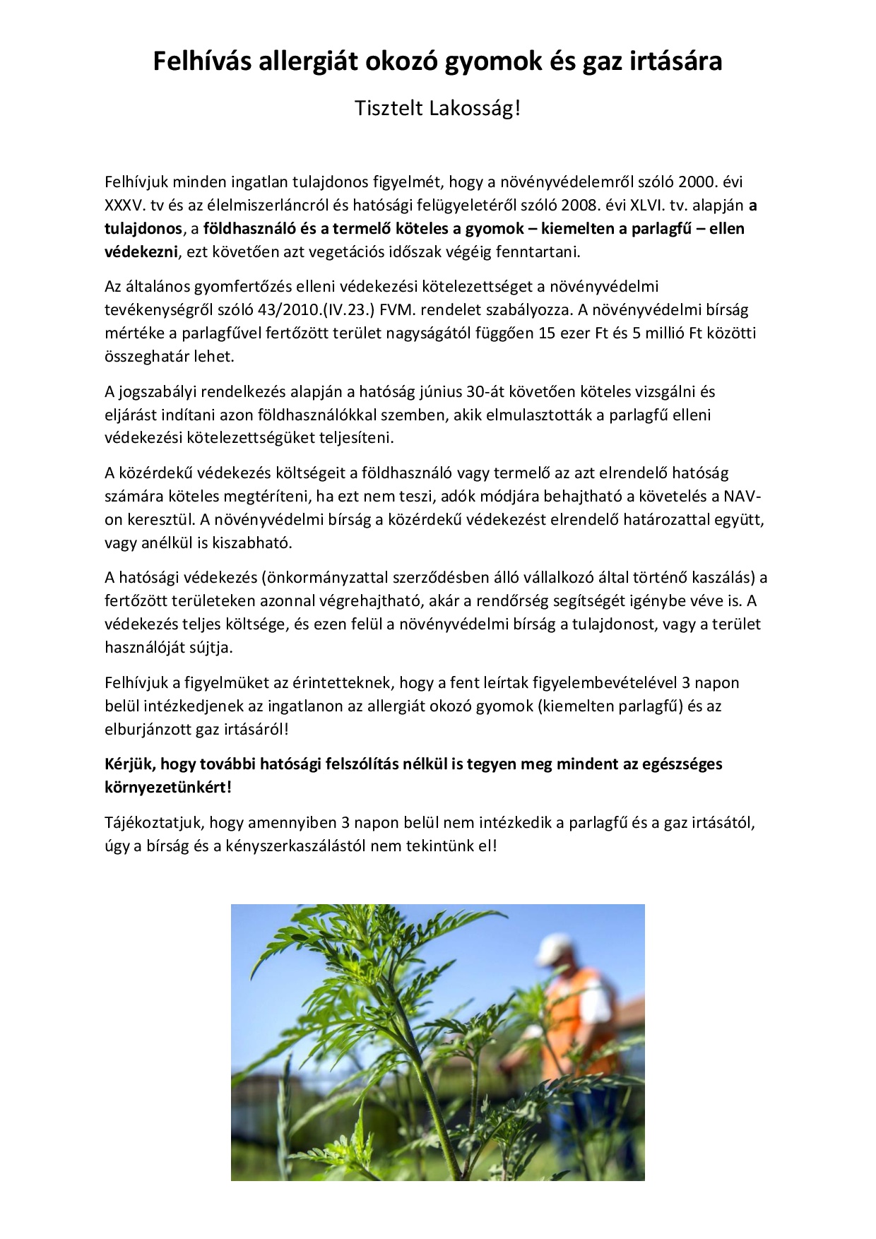 - Tájékoztató parlagfű-mentesítéssel kapcsolatban.pdf Megtekintések: 1094 Méret: 616 Kb
