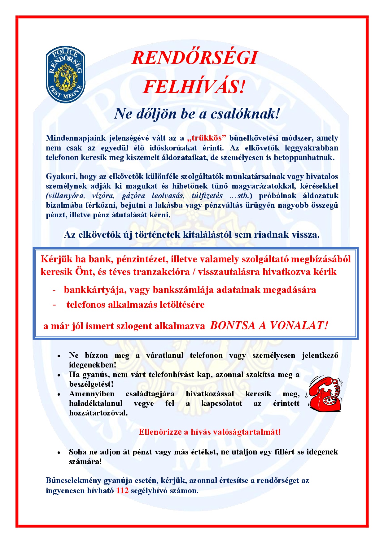 Csalásokról tájékoztató